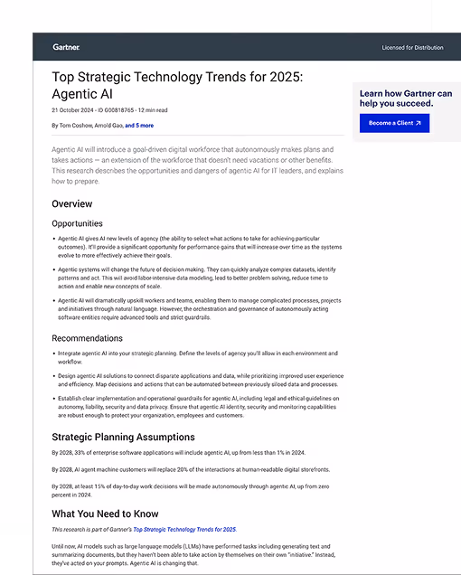 Gartner Top 10 Strategic Technology Trends for 2025: Agentic AI
